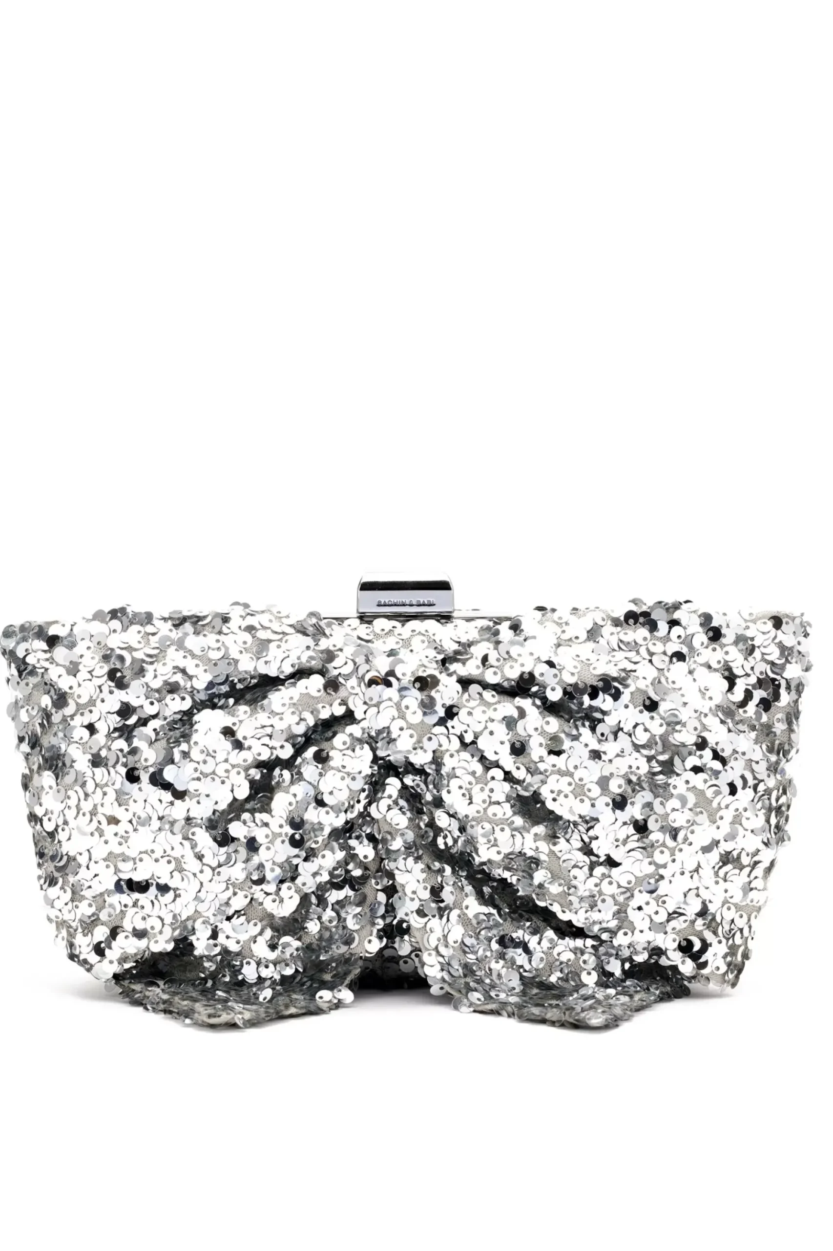 Prepare To Fall In Love With The Cupid’S Clutch – Our Clever Way Of Avoiding “The Bow” In The Room. A Fully Framed Convertible Clutch With A Silver Finish, An Interior Pocket, And A Removable Chain With A Top Closure, She Is Sure To Make An Entrance. Its Statement Bow Detailing Combined With Its Allover Silver Sequins Makes This Clutch A Perfect Choice For Your Next Night Out.