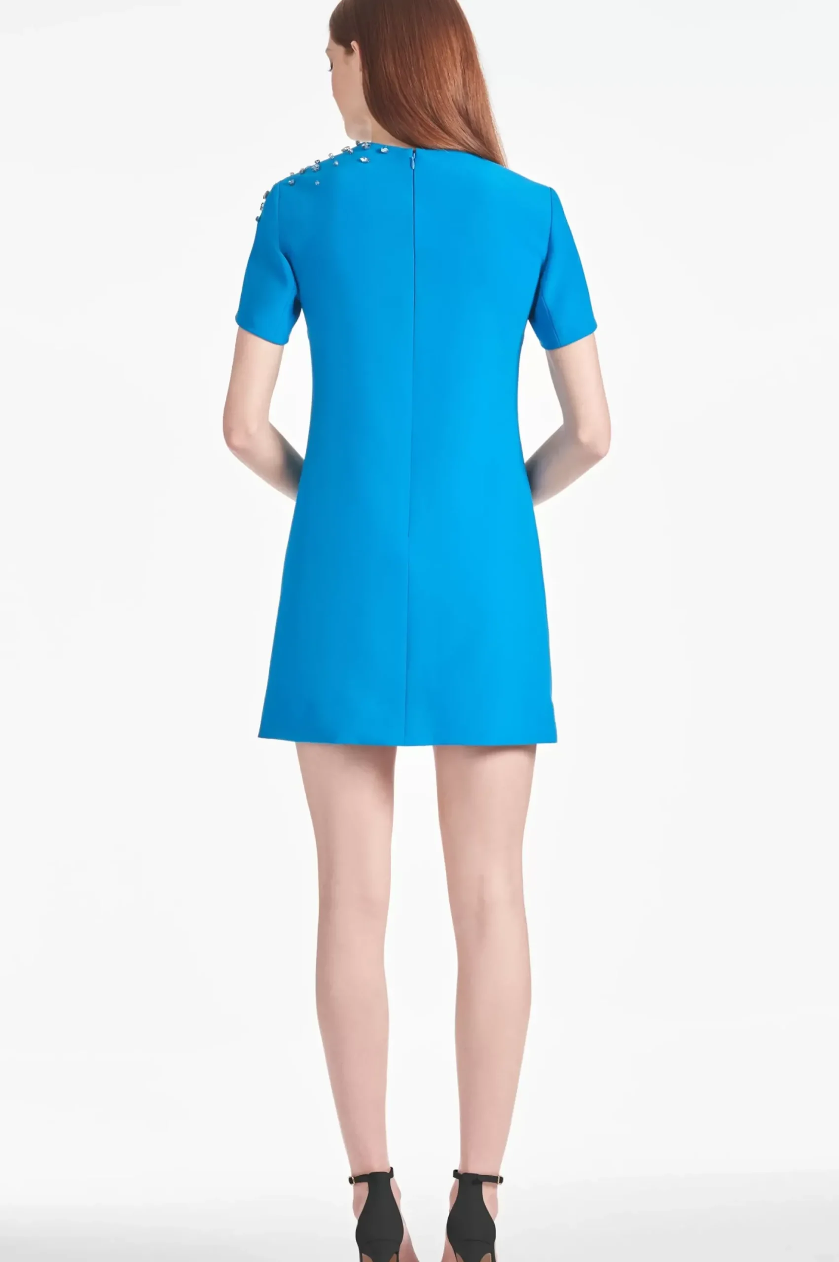 The Lauren Dress In Striking Azure Is A Must Have Item This Season. Crafted From Thick Stretch Crepe, This Mini Dress Features Short Sleeves And Elegant Embellishments For An Eye-Catching Effect That Will Make You Stand Out From The Crowd.
