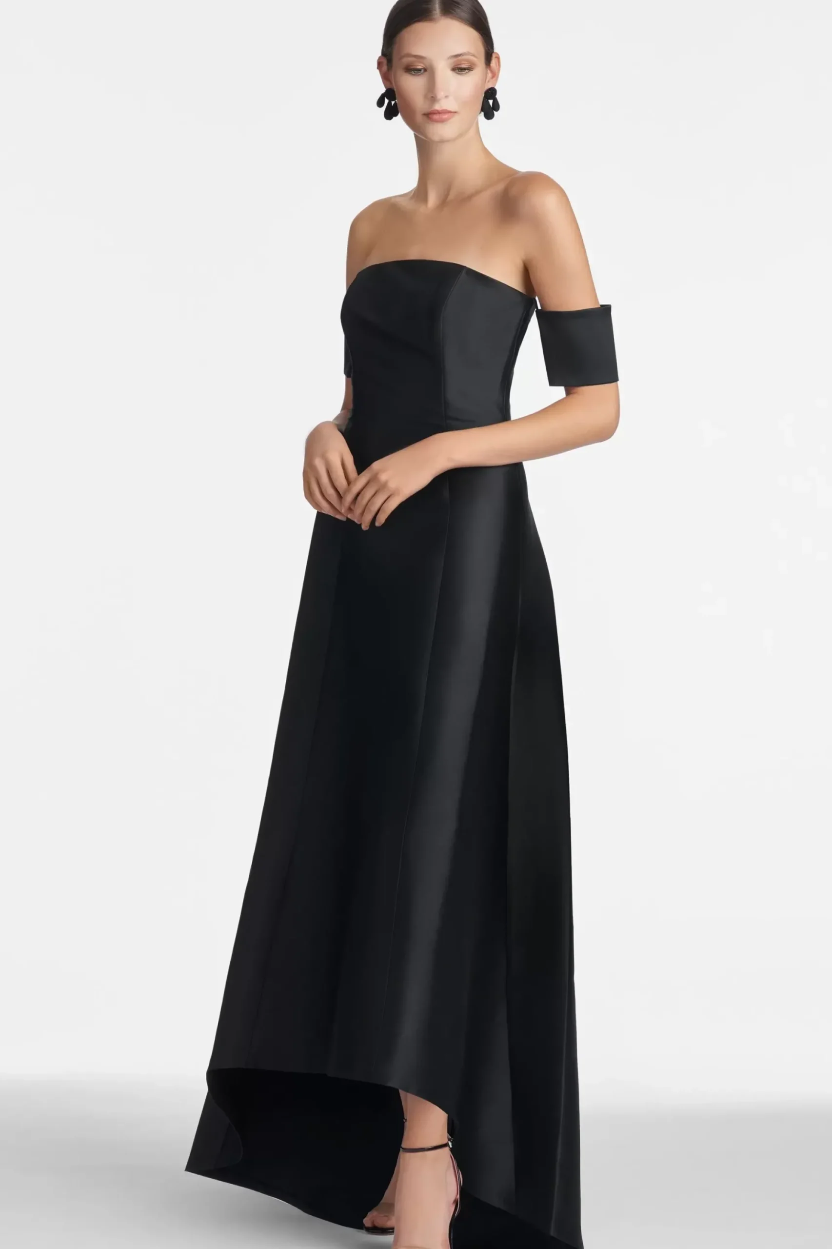 Agyness Is Sculptural In Design With A Clean Silhouette That Holds Its Very Flattering Shape. A Simple Strapless Gown With A Hi-Lo Effect Is Made Unique With A Banded Cuff At Either Arm That Seemingly Floats In Place. The Band Is Fixed To The Dress With A Discreet Dyed-To-Match Elastic Band For A Range Of Motion.