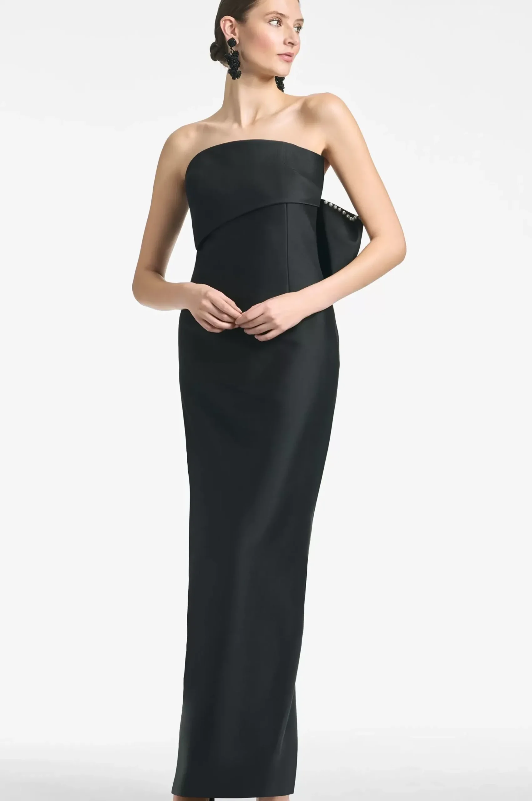 Keira Is A Column Of Stretch Mikado, An Expertly Tailored Strapless Gown With Quite The Secret At The Back. She Is Adorned By A Fully Articulated Bow Traced In Pearls Bringing The Drama To An Otherwise Timeless Column Gown.