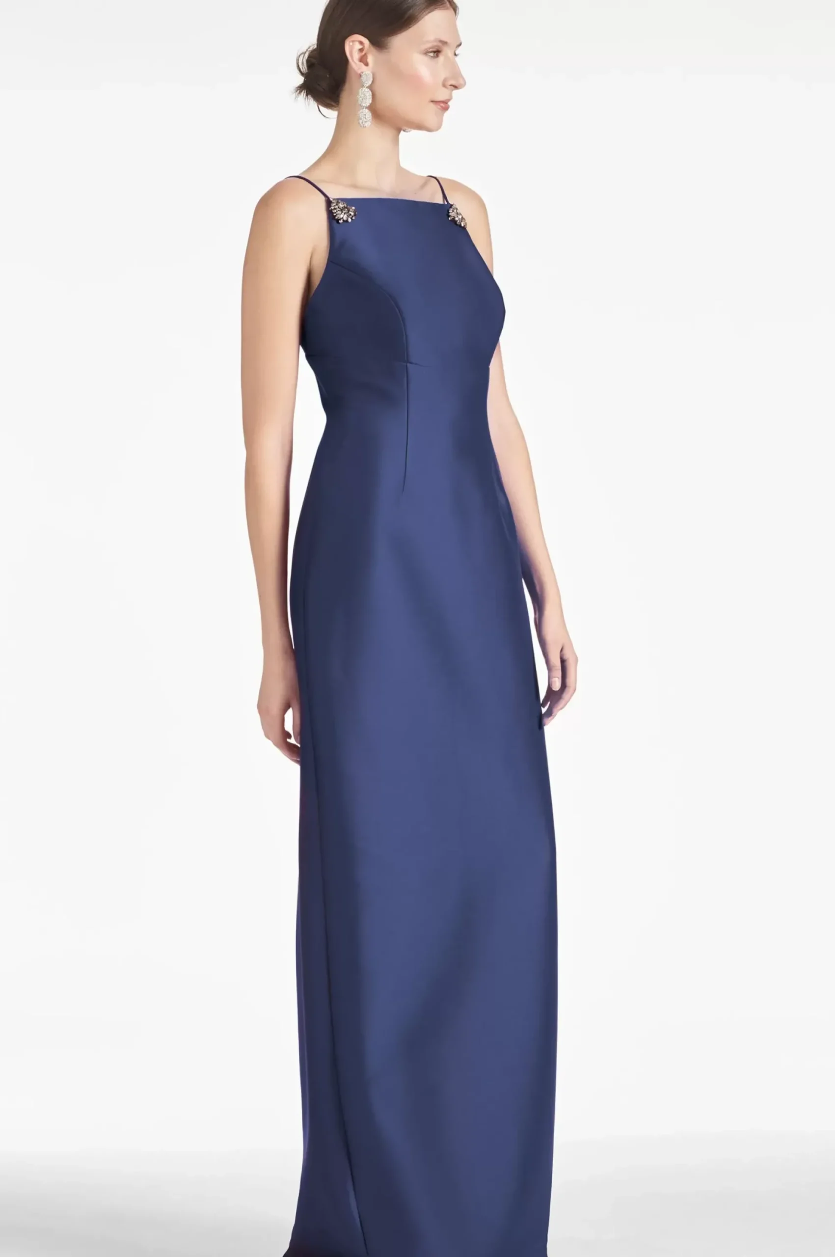 Sometimes The Best Answer Is The Most Simple One, And That Is True For The Pryce Gown. A Stunning Column Dress In Stretch Mikado, She’S Delicately Adorned With Crystal Clips In A Stunning Shade Of Night Sky.