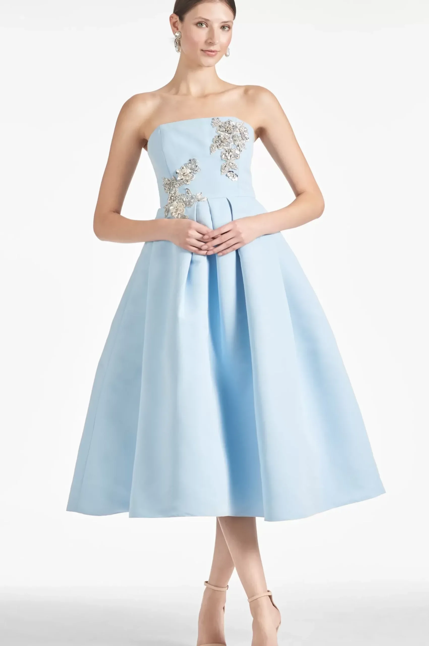 The Sydney Gown Is A Strapless, Tea-Length Dress In A Beautiful, Perfect Blue. Embellished With Subtle Sparkle Detail, This Sweet Dress Is Sure To Make You Feel So Special That You Won’T Want To Take Her Off.