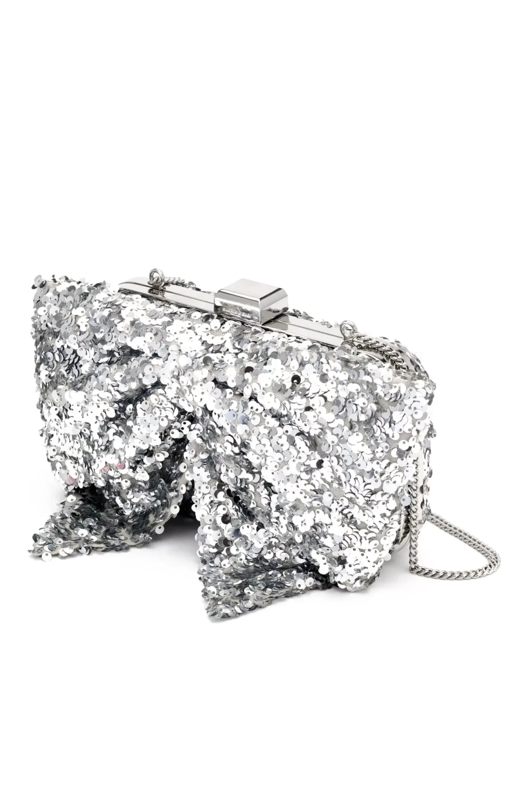 Prepare To Fall In Love With The Cupid’S Clutch – Our Clever Way Of Avoiding “The Bow” In The Room. A Fully Framed Convertible Clutch With A Silver Finish, An Interior Pocket, And A Removable Chain With A Top Closure, She Is Sure To Make An Entrance. Its Statement Bow Detailing Combined With Its Allover Silver Sequins Makes This Clutch A Perfect Choice For Your Next Night Out.