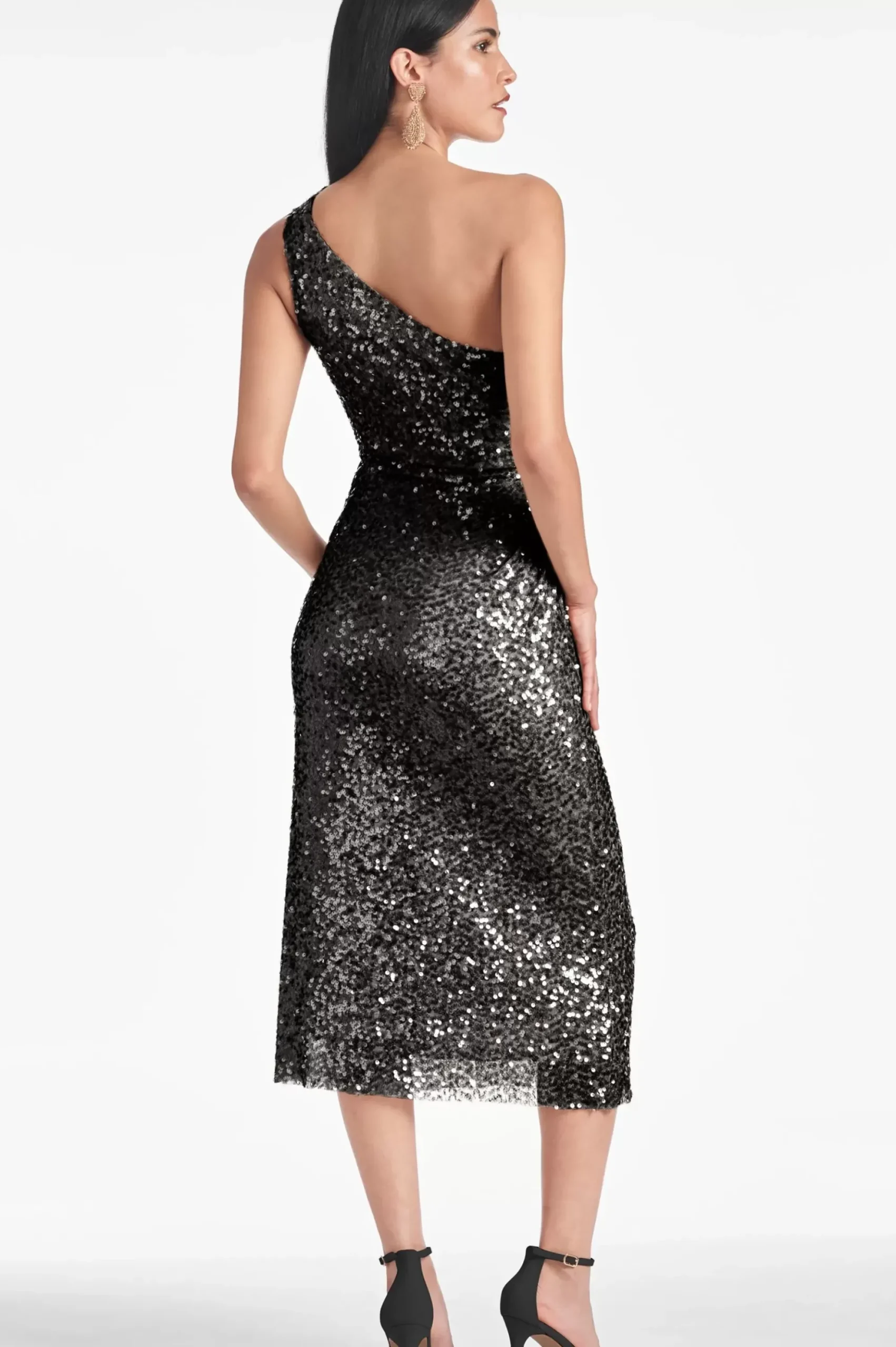 Look And Feel Amazing In The Carmen Dress! This One Shoulder Design Sparkles Black Sequins, Making It A Perfect Choice For Any Fun Or Festive Occasion. The Mid-Length Cut And Stretch Fabric Ensures A Comfortable And Stylish Fit – You’Ll Love The Confident Feeling You Get While Wearing It!