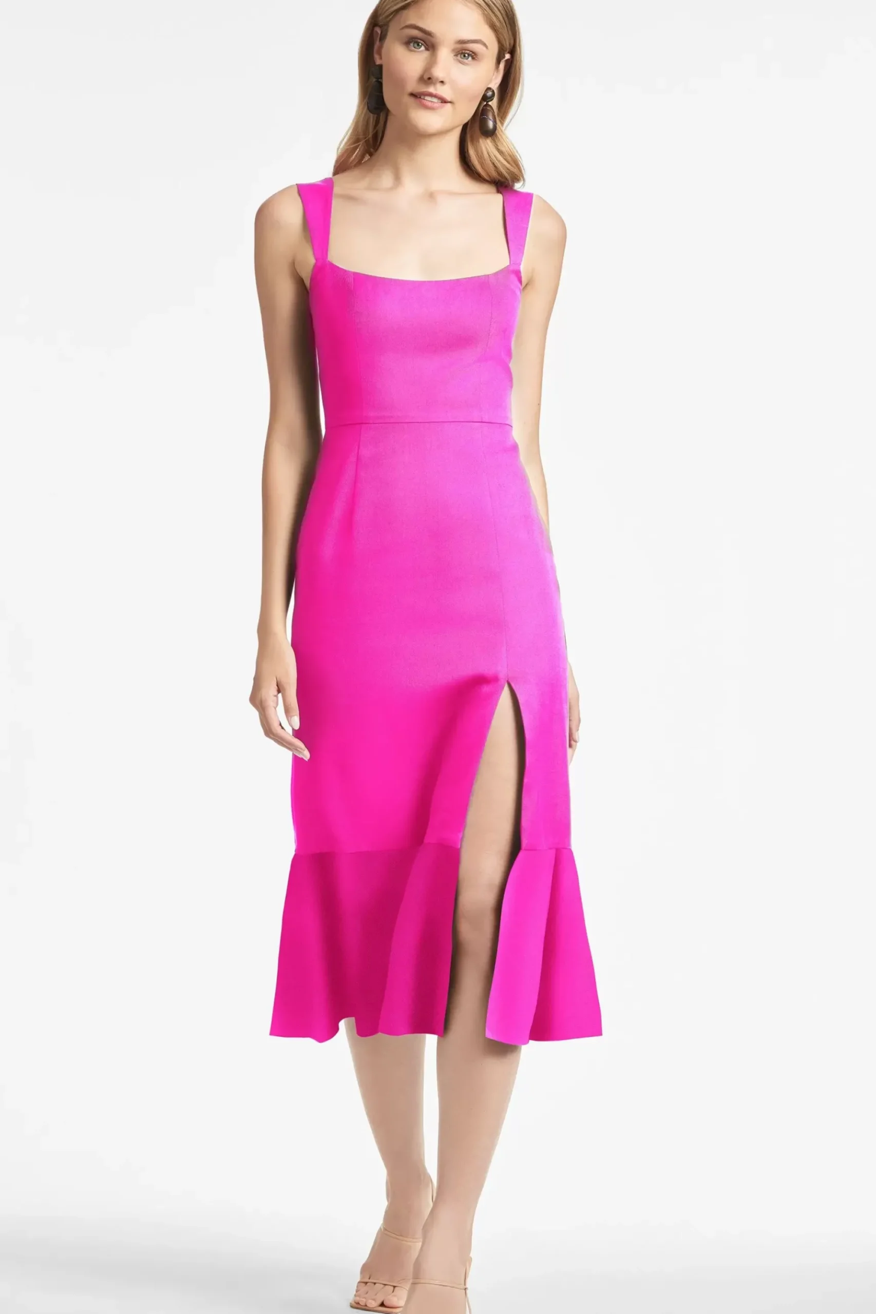 This Is A Shape That Gives Leading-Lady, Siren Vibes. Sometimes The Simplest Things Take The Most Time And Engineering. This Dress Hugs And Forgives In All The Right Places. Smocking At Back Allow For What Feels And Looks Like A Custom Fit. Tapered Straps Top A Trim Sheath Dress In Cerise Finished With An Off-Center Slit.