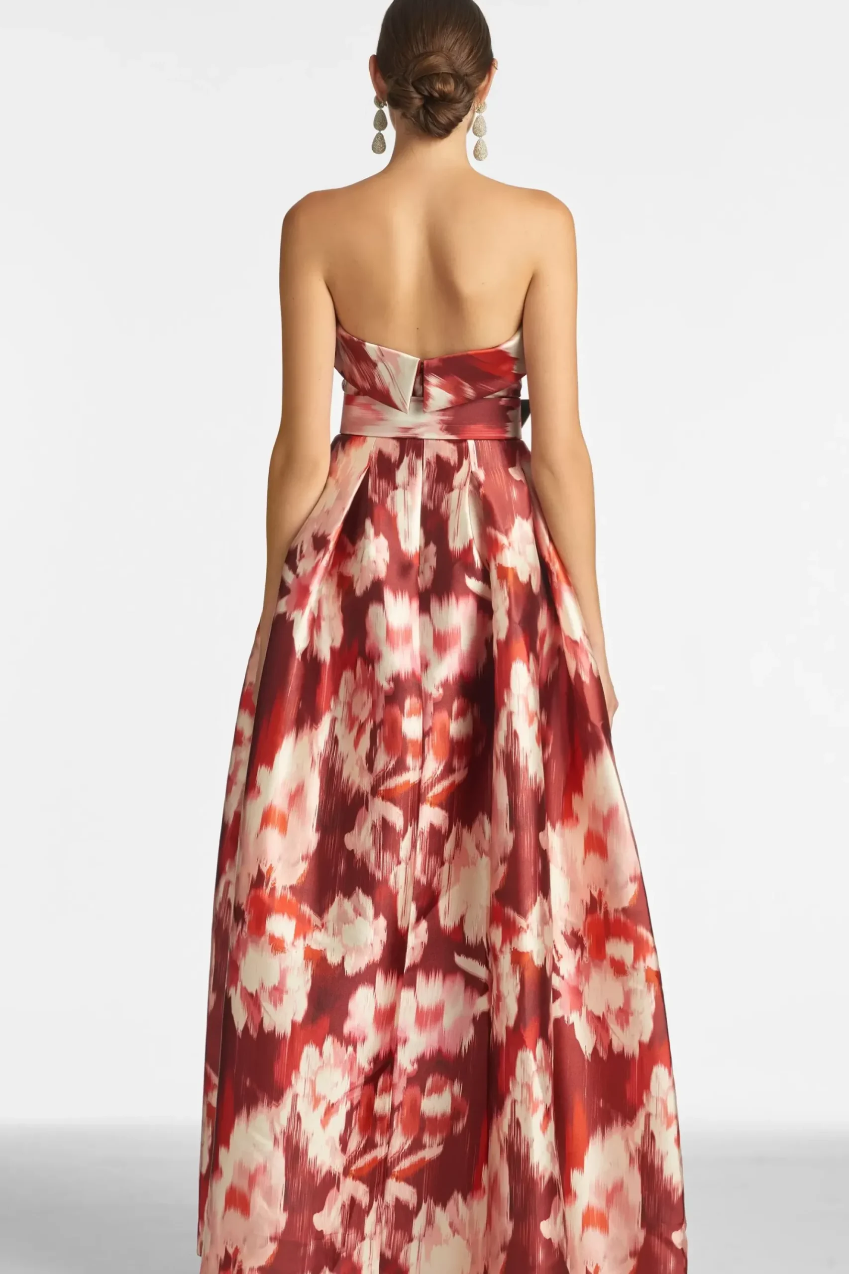 The Brielle Gown Is A Vision In Our Uniquely Romantic Ikat Floral Print. The Otherwise Classic Strapless Silhouette Has A Specially Designed Envelope Fold To Add A Bit Of Architectural Interest.