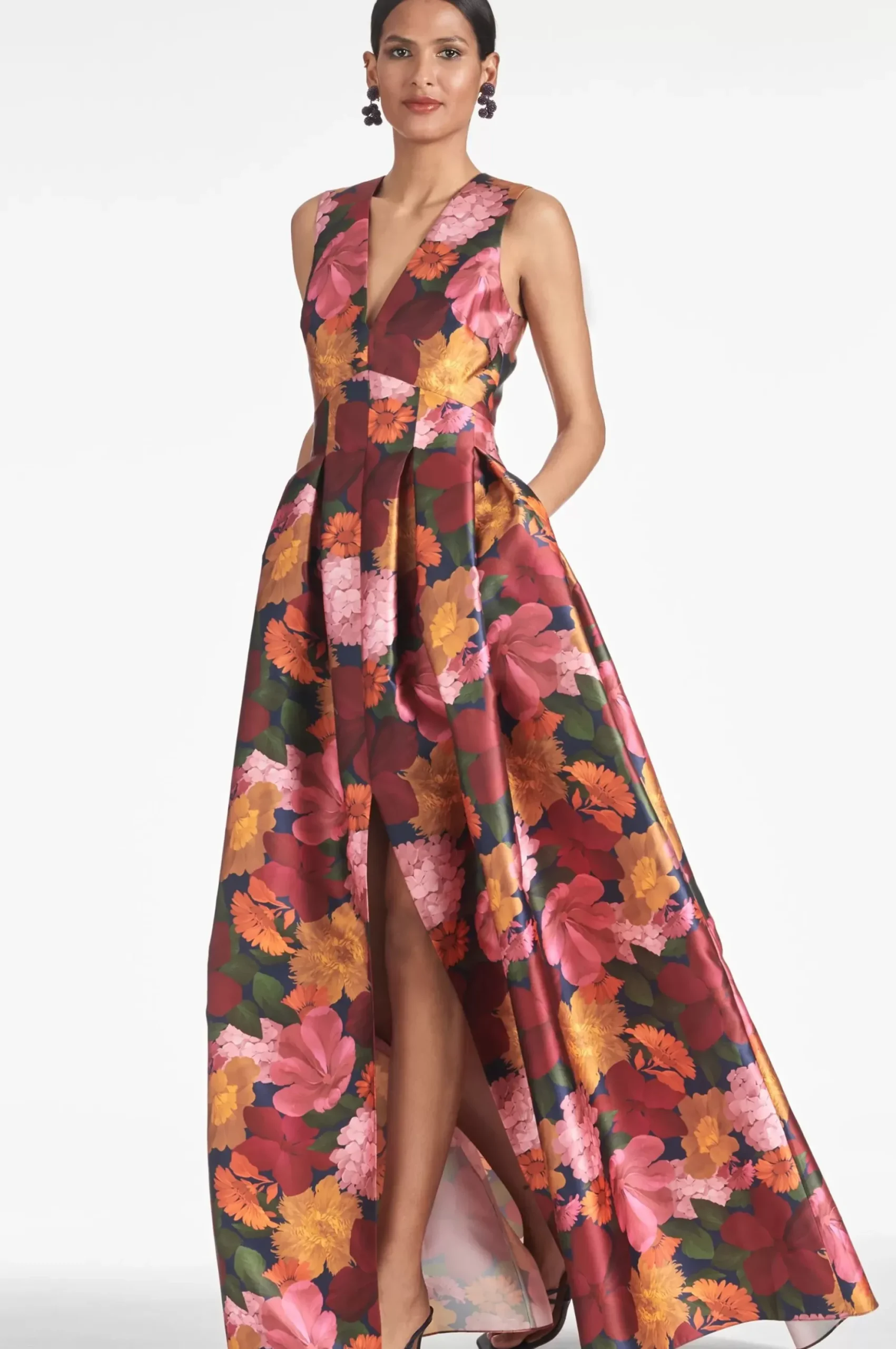The Brooke Is Our V-Neck Gown With Box Pleats, Peaked Waist Seam, And Side Pockets. This Dress Is What We Consider To Be A Classic, Essential Silhouette, A Perfect Canvas For Our Most Breathtaking Prints.