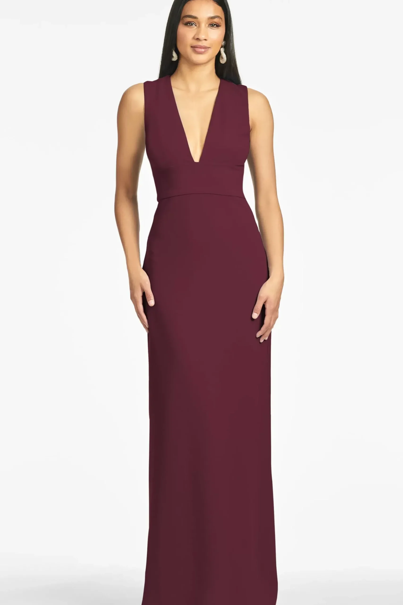 Women Sachin & Babi Gowns-Loretta 4-Way Stretch Crepe Gown Deep Wine