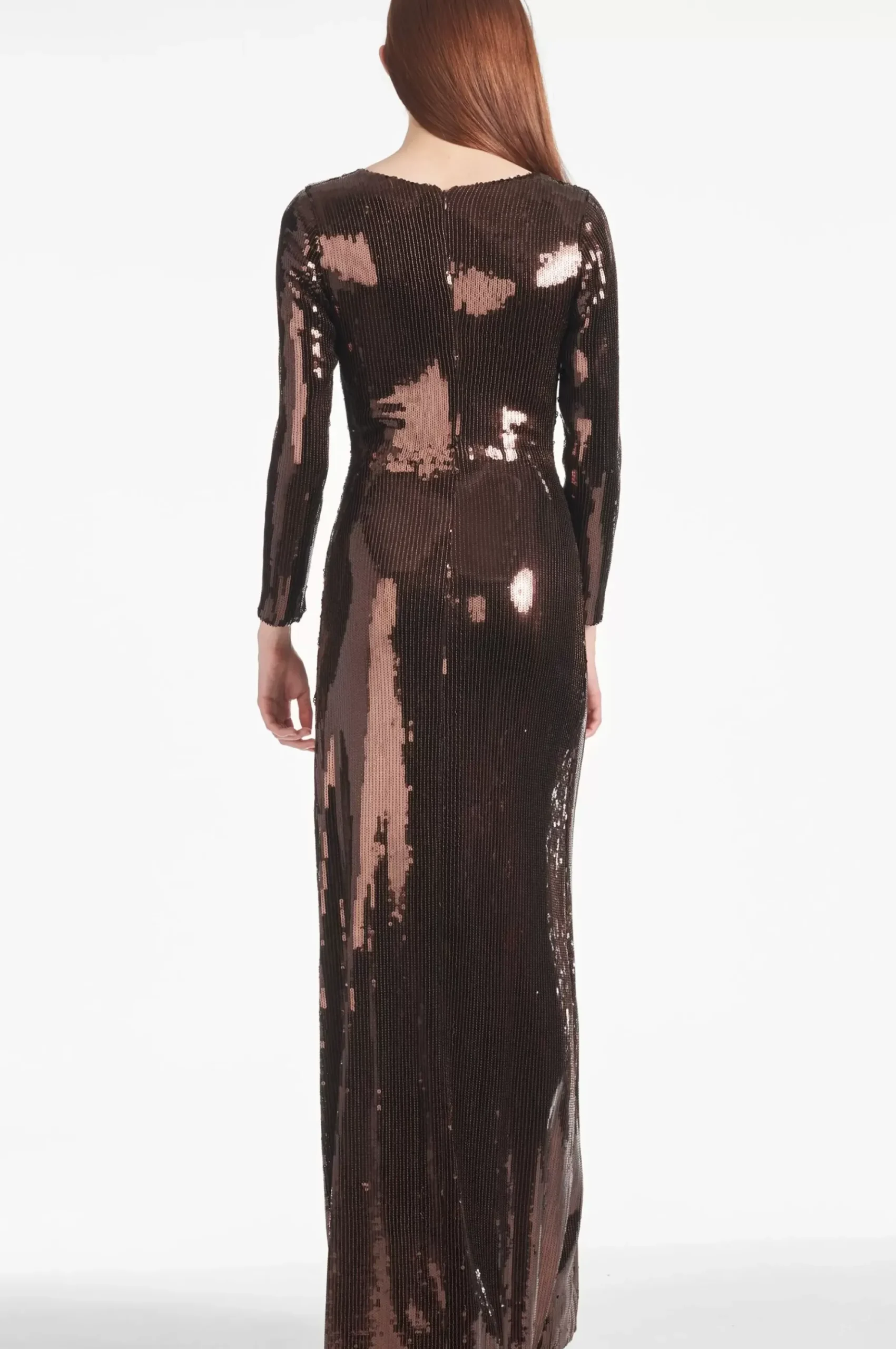 The Sequin Talulla Gown Is The Perfect Eveningwear Choice For Any Special Occasion. Its Elegant Shine, Espresso Color, And All-Over Sequins Make It Stand Out From The Rest. This Long-Sleeve Gown Features A Subtle V-Neck For An Exquisite And Sophisticated Look.